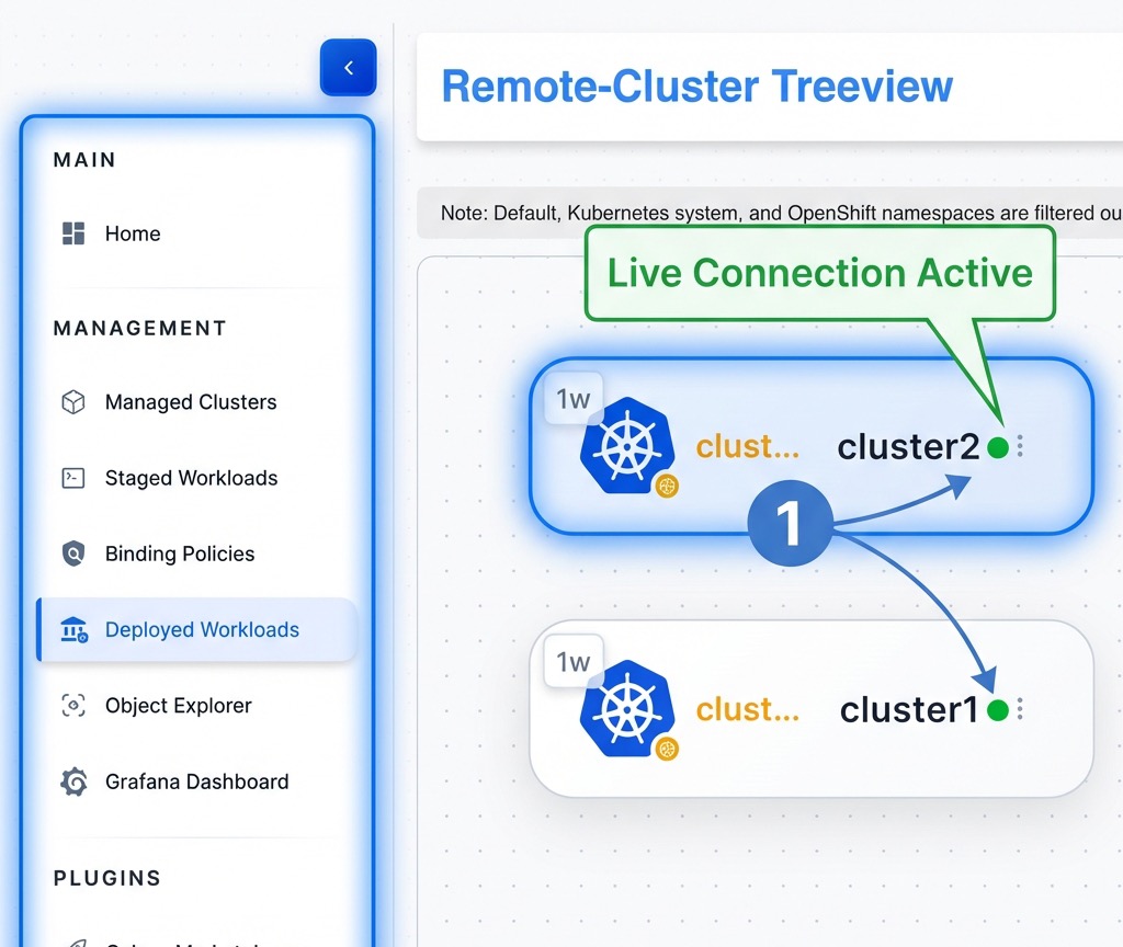 - Staged Workloads: A “pre-flight” area where you can inspect workloads before they are actually deployed to remote clusters.